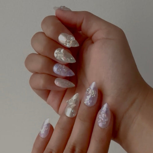 Graceful, delicate, and endlessly elegant, the Glided Bloom, was designed to bring a touch of royalty to your everyday look. With a flattering short-almond shape and detailed handcrafted finish, these nails capture the beauty of blossoms in full bloom, while giving you salon-quality results in minutes.